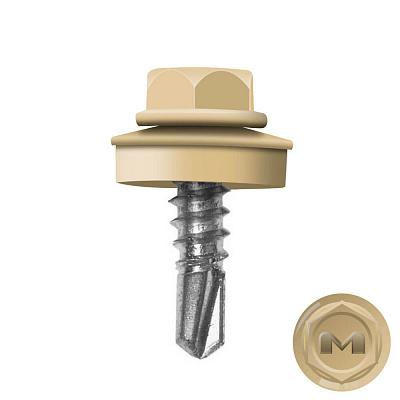 Кровельные саморезы Daxmer (Даксмер) по металлу цветом RAL1001 Клен Светлый 5,5*19мм имеют частую резьбу, а специальная металлическая шайба с ЕРDМ-уплотнителем 2,8 мм обеспечивает плотное прилегание профилированного металла (кровли) к обрешетке, а также препятствует попаданию влаги. Также ЕРDМ-уплотнитель защищает от перепада температур (за счет высокого содержания каучука), который адаптируется под окружающую температуру и не позволяет кровле или забору «гулять», плотно прижимая листы к основанию.